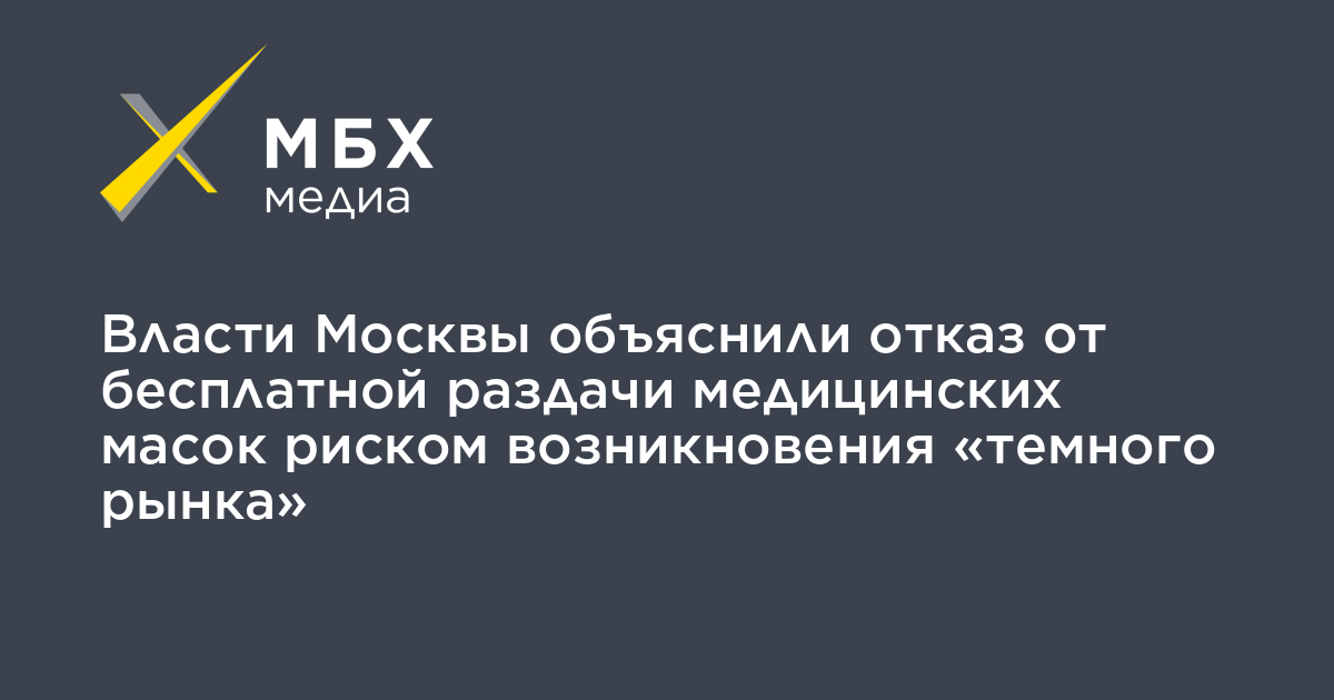 Власти Москвы объяснили отказ от бесплатной раздачи медицинских масок риском возникновения «темного рынка»