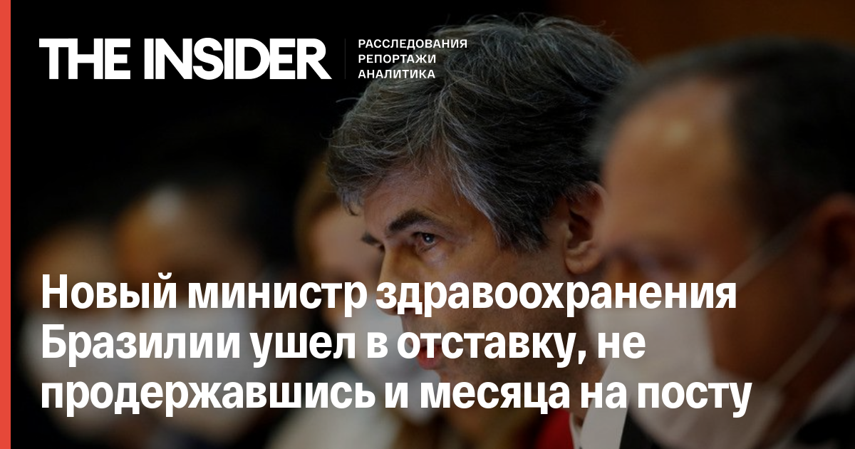 Новый министр здравоохранения Бразилии ушел в отставку, не продержавшись и месяца на посту