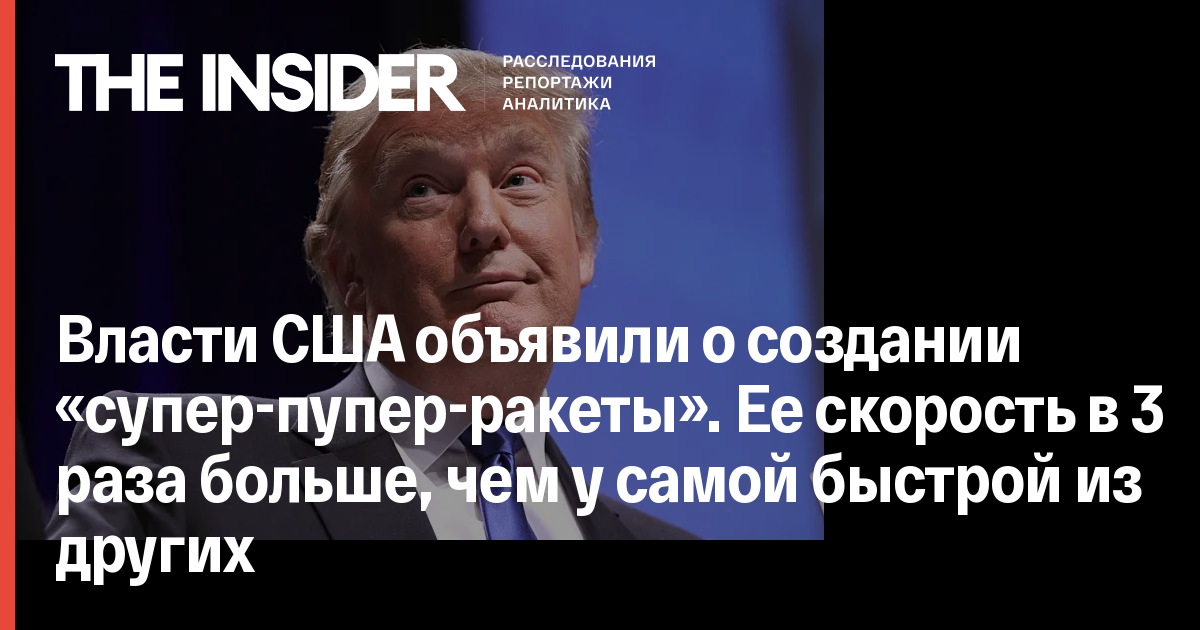 По словам лидера, новая ракета будет гораздо быстрее стоящих на вооружении у России и Китая. Изобретение представляет собой военную технику «невиданного ранее уровня». Других подробностей о проекте пока не разглашается.