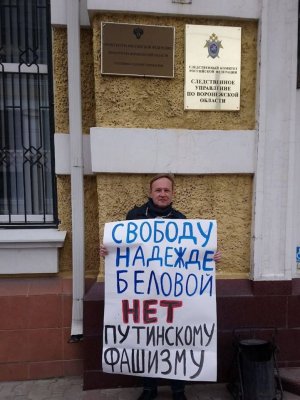 Александр Бершов, Александр Болдырев и Желтухин 15 мая вышли в одиночный пикет к зданию Следственного комитета, в котором ранее проходил допрос Беловой, и по очереди стояли с плакатом «Свободу Надежде Беловой. Нет путинскому фашизму». Всех активистов по телефону вызвали на 19 мая дать объяснения в связи с одиночным пикетом.