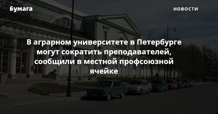 В Санкт-Петербургском государственном аграрном университете планируют сократить 51 преподавательскую ставку. Об этом «Бумаге» рассказала сотрудница кафедры бухгалтерского учета и аудита Ирина Трушкина, которая также является председателем местной профсоюзной ячейки «Университетская солидарность».