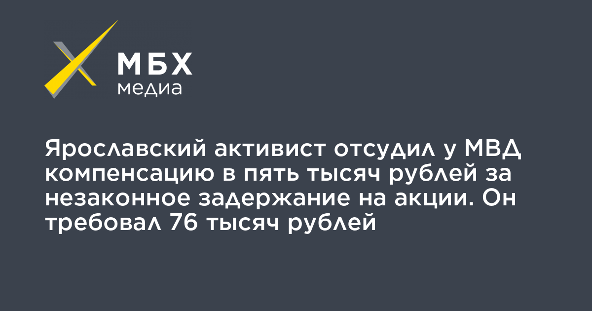 Ярославский активист отсудил у МВД компенсацию в пять тысяч рублей за незаконное задержание на акции. Он требовал 76 тысяч рублей