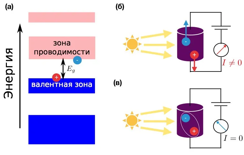 В начале 1930-х годов Яков Ильич Френкель задумался над вопросом: может ли кристалл поглощать свет, но так, чтобы фотопроводимость не возникала, несмотря на наличие электронов и дырок? Ответ на этот, на первый взгляд, парадоксальный вопрос оказался положительным [1]. Действительно, электрон и дырка являются зарядами противоположного знака, поэтому они притягиваются друг к другу и могут образовать связанное состояние. Такое связанное состояние электрона и дырки называют экситоном — квантом «возбуждения» полупроводникового кристалла. Экситон — электрически нейтральная квазичастица, поэтому он не может переносить электрический ток.