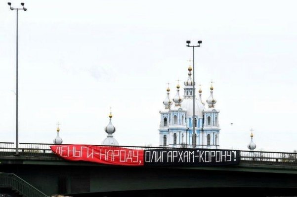 • Акция с вывешиванием баннера на Малоохтинском мосту напротив Смольного состоялась 12 мая.