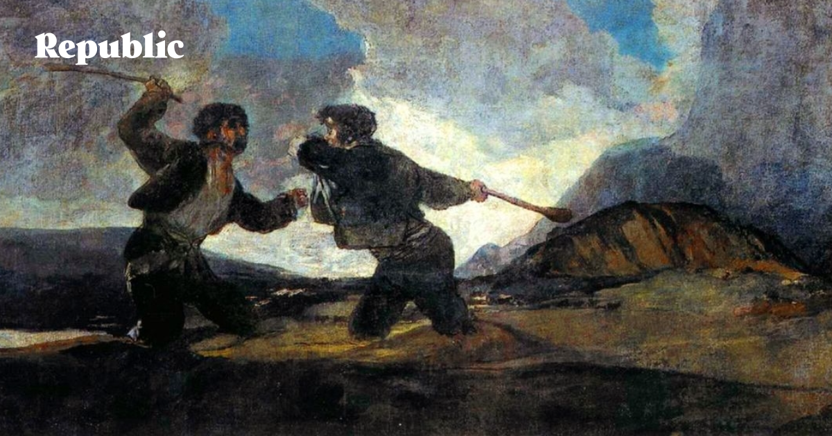 Итак, главный принцип жирардианского анализа — «ищите двойников», или, если выразиться немного сложнее, двоичные паттерны. Именно в этом смысле взаимного подражания и соперничества философ рассматривает, например, противостояние Англии и Франции в XV веке, затем Франции и Германии в ходе революционных и наполеоновских войн, франко-прусской войны 1870–1871 годов и обеих мировых войн. Со временем основная «ось» подражания, сначала в европейской, а затем и в глобальной истории, менялась и продолжает смещаться: в эпоху Холодной войны это были уже СССР и Америка, а сейчас — США и Китай. Однако же и помимо этих глобальных и поэтому мегаломанских трендов есть и множество других двойников, которых нетрудно припомнить буквально сходу. Это Израиль и Палестина, Иран и две его «сатаны» — США и Саудовская Аравия, не считая, опять же, Израиля; сингалы и тамилы на Шри-Ланке, индуисты и сикхи в индийском штате Пенджаб, Индия и Пакистан, Россия и США, те же США и Китай, КНДР и Республика Корея, Республика Корея и Япония, Армения и Азербайджан, наши любимые Россия и Украина — сюда же ДНР, ЛНР и прочее. При всей разнородности списка — в нем есть как состоявшиеся нации-государства, так и этнические, религиозные или просто сепаратистские группы, — очевидно, что соперники образуют устойчивые пары, зациклены друг на друге и скованы узами более или менее постоянной и ожесточенной вражды.