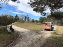 Иностранное военное захоронение Второй мировой войны в Балтийске – городская достопримечательность. Оно находится на Северном молу – в 200 метрах от побережья. Сегодня это кладбище больше напоминает парк с дорожками, душистыми соснами, сиренью и луговыми травами. Здесь можно ходить по газонам и вообще нет ограничений для прогулок, чем пользуются местные жители.
