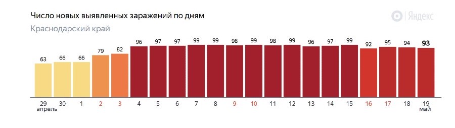 - 7, 8, 10, 12 и 15 мая — по 99 новых случаев ежедневно;