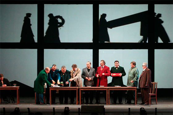 © Наташа Разина / Мариинский театр «Мертвые души». Обед у прокурора. Первая картина первого акта. 2011 Сегодня, 21 мая, в 19:00 на онлайн-платформе Мариинского театра mariinsky.tv начнется трансляция оперы Родиона Щедрина «Мертвые души».
