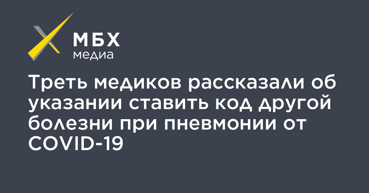 Треть медиков рассказали об указании ставить код другой болезни при пневмонии от COVID-19