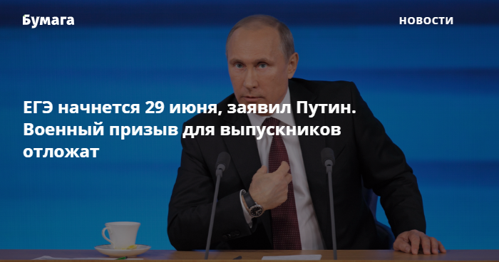 ЕГЭ начнется 29 июня, заявил Путин