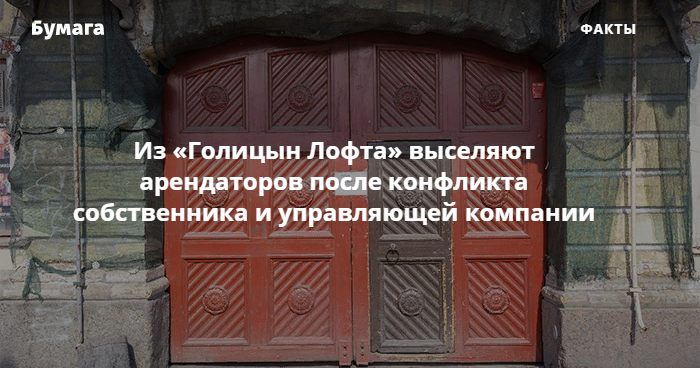 Резиденты жалуются на агрессивное поведение выселявшей их компании и намерены обратиться в суд. Пространством на Фонтанке занимался предприниматель Александр Басалыгин, из кластеров которого уже выселяли резидентов. «Бумага» рассказывает, что происходит с «Голицын Лофтом».
