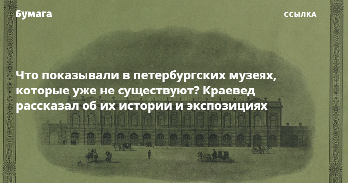 Краевед и автор рассылки «Бумаги» о петербургских домах Алексей Шишкин рассказал об истории городских музеев, которые перепрофилировали, ликвидировали или разграбили. Пост опубликован на странице библиотеки имени В. В. Маяковского во «ВКонтакте».