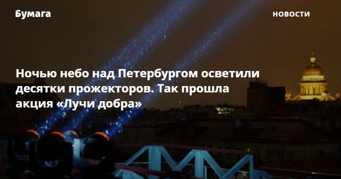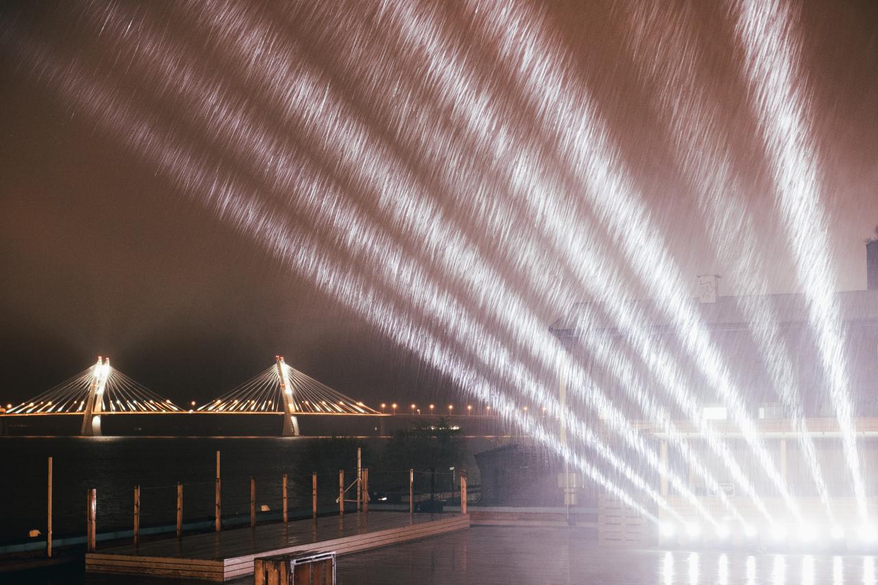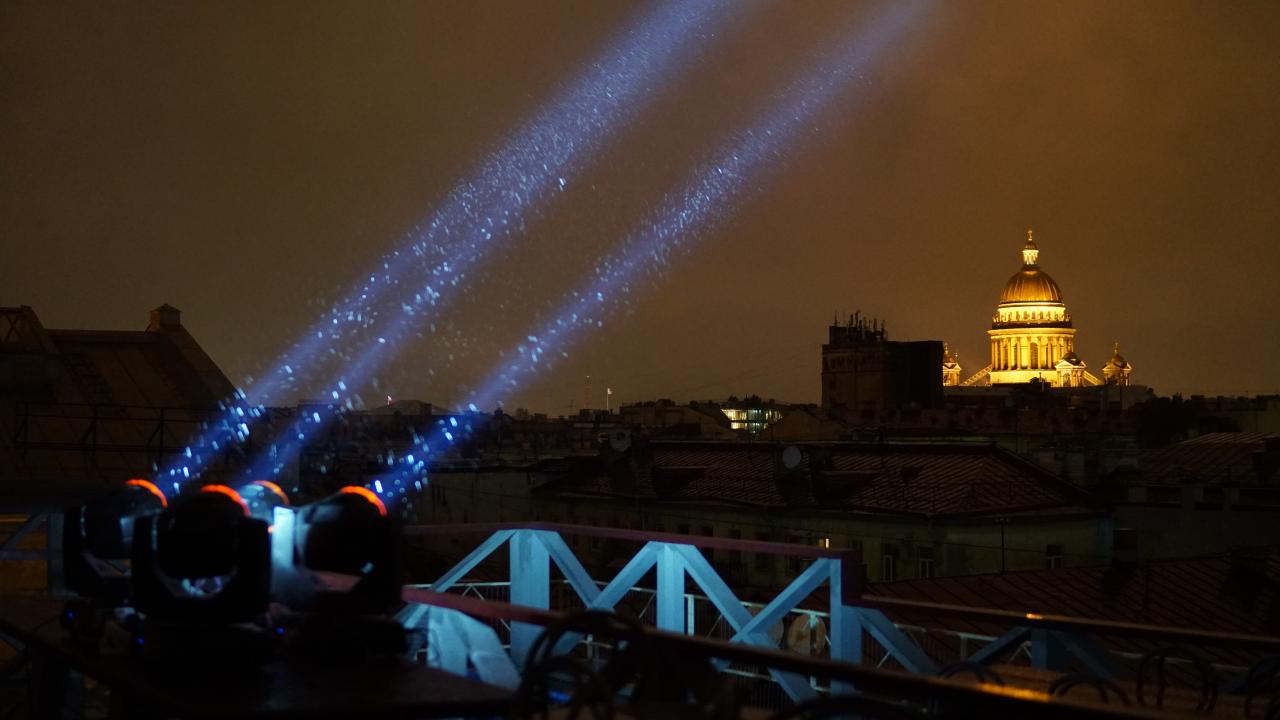 В ночь на 21 мая в Петербурге прошла акция «Лучи добра». Во время нее сотрудники компаний, занимающихся проведением фестивалей и концертов, направили в небо лучи света, рассказали «Бумаге» организаторы перформанса.