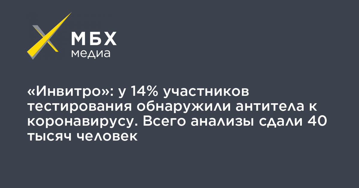 Частная медицинская компания «Инвитро» заявила об обнаружении антител к коронавирусной инфекции у 14% участников тестирования. Об этом сообщается в пресс-релизе компании.