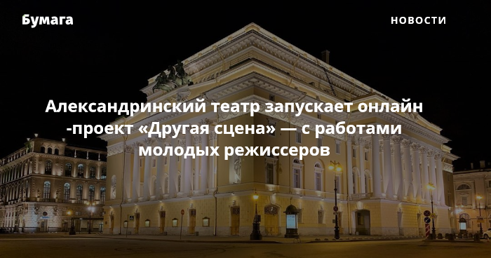 Александринский театр запускает онлайн-проект «Другая сцена», где будет представлена мультижанровая программа от молодых режиссеров. Об этом «Бумаге» рассказали в пресс-службе театра.