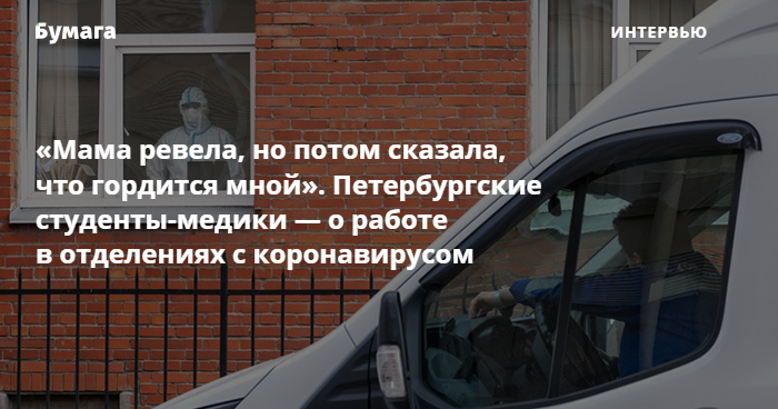 — Я учусь на врача-лечебника в университете имени Мечникова. Работаю с начала мая там же: в [подведомственной вузу] клинике имени Петра Великого — в бывшем терапевтическом отделении, перепрофилированном под инфекционное.