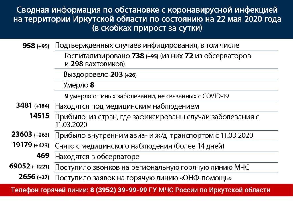 Еще два человека, заболевших коронавирусом, скончались в Иркутской области, заявил оперативный штаб региона 22 мая. Власти утверждают, что жители умерли от «иных заболеваний, не связанных с COVID-19».