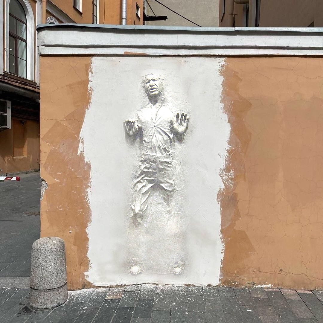 Опустевшую стену раскрашивают и с помощью фотошопа. На место «фрески» добавляют портреты президента Владимира Путина, губернатора Александра Беглова и историка Евгения Понасенкова, а также граффити с Артемием Лебедевым и замороженного Хана Соло. На месте Бродского появился и Свидетель из Фрязино.