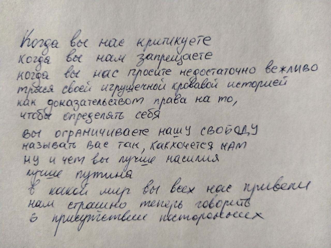 Мы публикуем оба стихотворения вместе с комментариями авторок и мнением литературного критика Юлии Подлубновой. Сохранены авторская орфография и пунктуация.