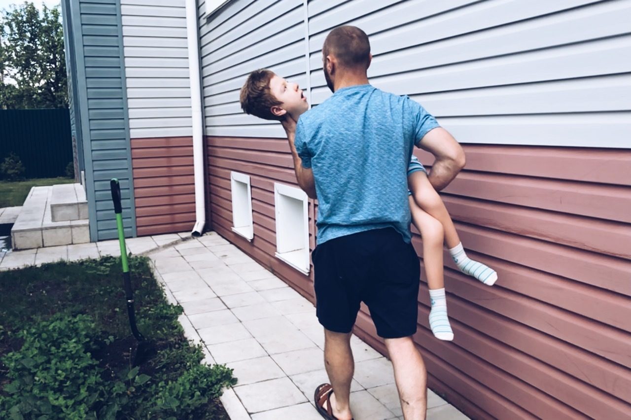 Коля на прогулке недалеко от домаФото: Мария Гельман/VII Agency для ТД У Полины сейчас в планах сделать широкий дверной проем в гостиной, откуда выход на задний двор.