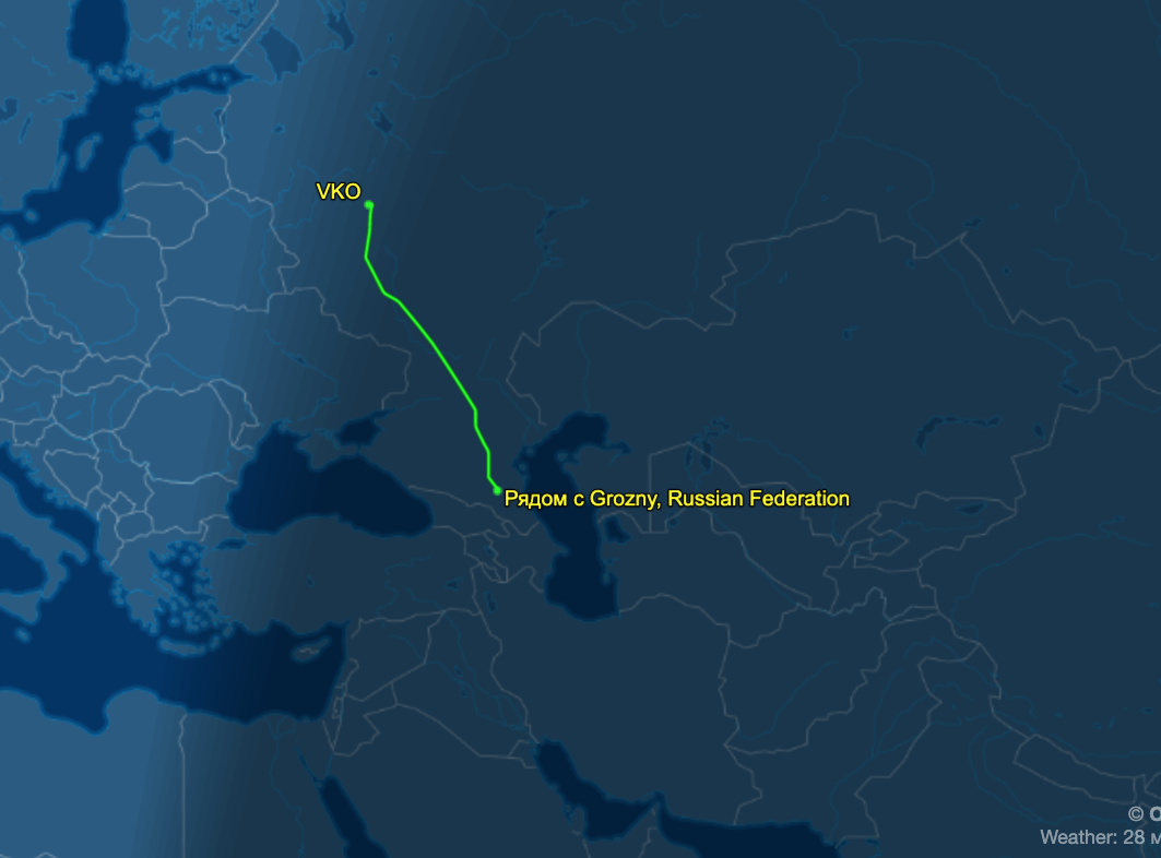 Сегодня в 18.39 мск из Грозного в Москву вылетел Airbus A319 с бортовым номером VQ-BVQ. На этом самолете обычно летает глава Чечни Рамзан Кадыров. В 20.01 мск борт приземлился аэропорту Внуково.