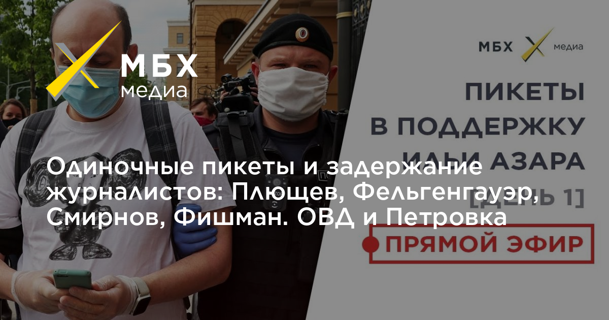 Одиночные пикеты и задержание журналистов: Плющев, Фельгенгауэр, Смирнов, Фишман. ОВД и Петровка