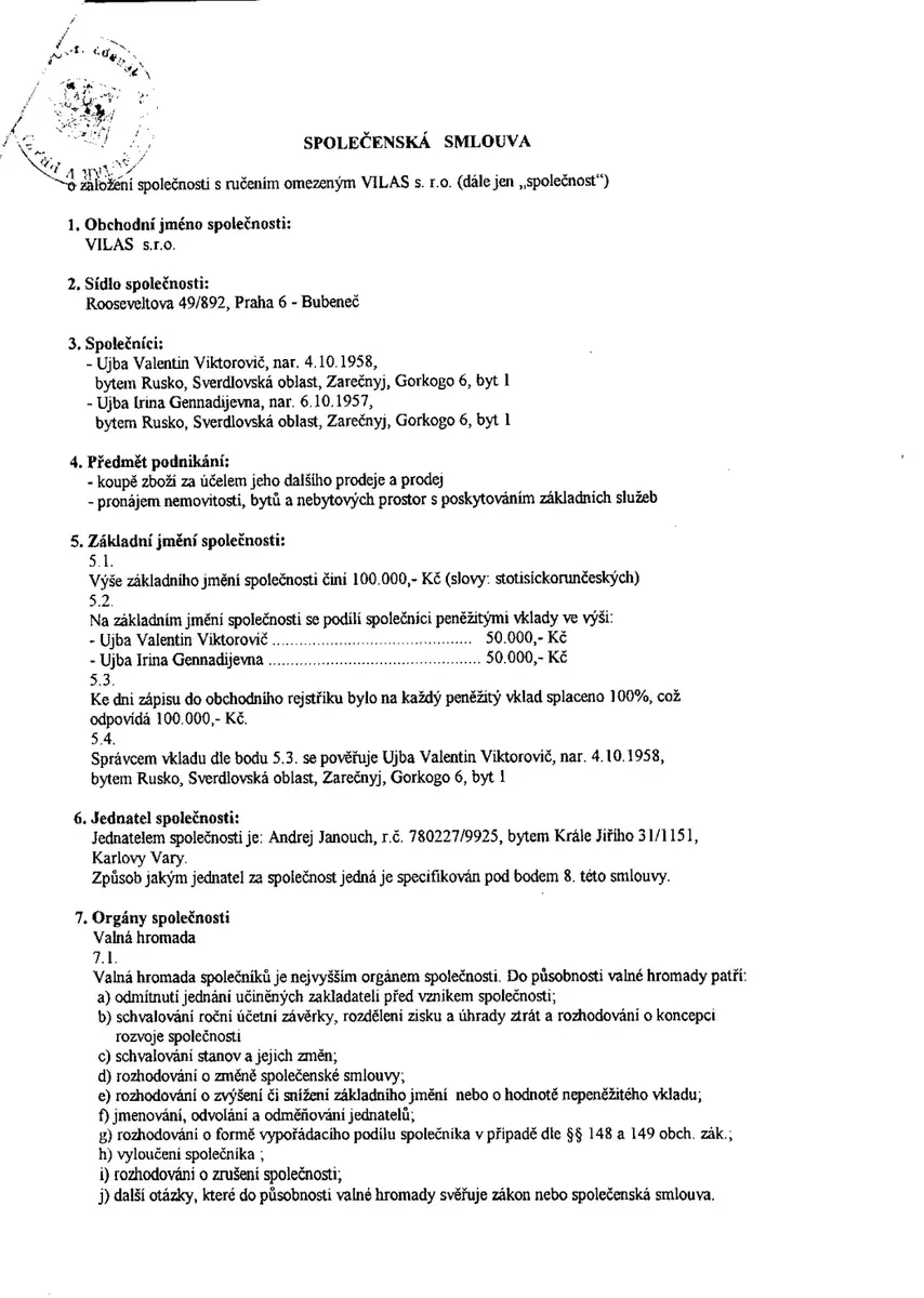 Компания Vilas числится как активная, а в ее документах и доверенностях указан российский адрес владельцев в городе Заречный Свердловской области, где Уйба начинал свою карьеру. Согласно выписке из Росреестра, квартира, указанная в документах при регистрации компании в Праге, на момент учреждения принадлежала семье Уйба.