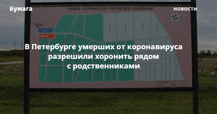 Хоронить умерших от COVID-19 будут на специально отведенных участках городских кладбищ Илики и Новое Колпинское, также разрешается захоронение на участках родственных могил на других кладбищах. Новые правила действуют с 28 мая.