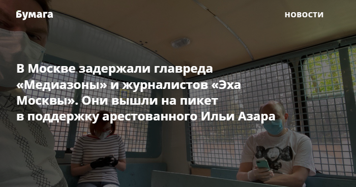 «Медуза» потребовала немедленно освободить Илью Азара. «Формально Илью Азара арестовали за то, что он, выйдя на пикет, нарушил запрет мэра Москвы Сергея Собянина на проведение публичных мероприятий во время эпидемии коронавируса. Это, мягко говоря, спорное решение: Азар стоял с плакатом вдалеке от людей, в маске и перчатках. Это „мероприятие“ состояло из одного человека», — написало издание.