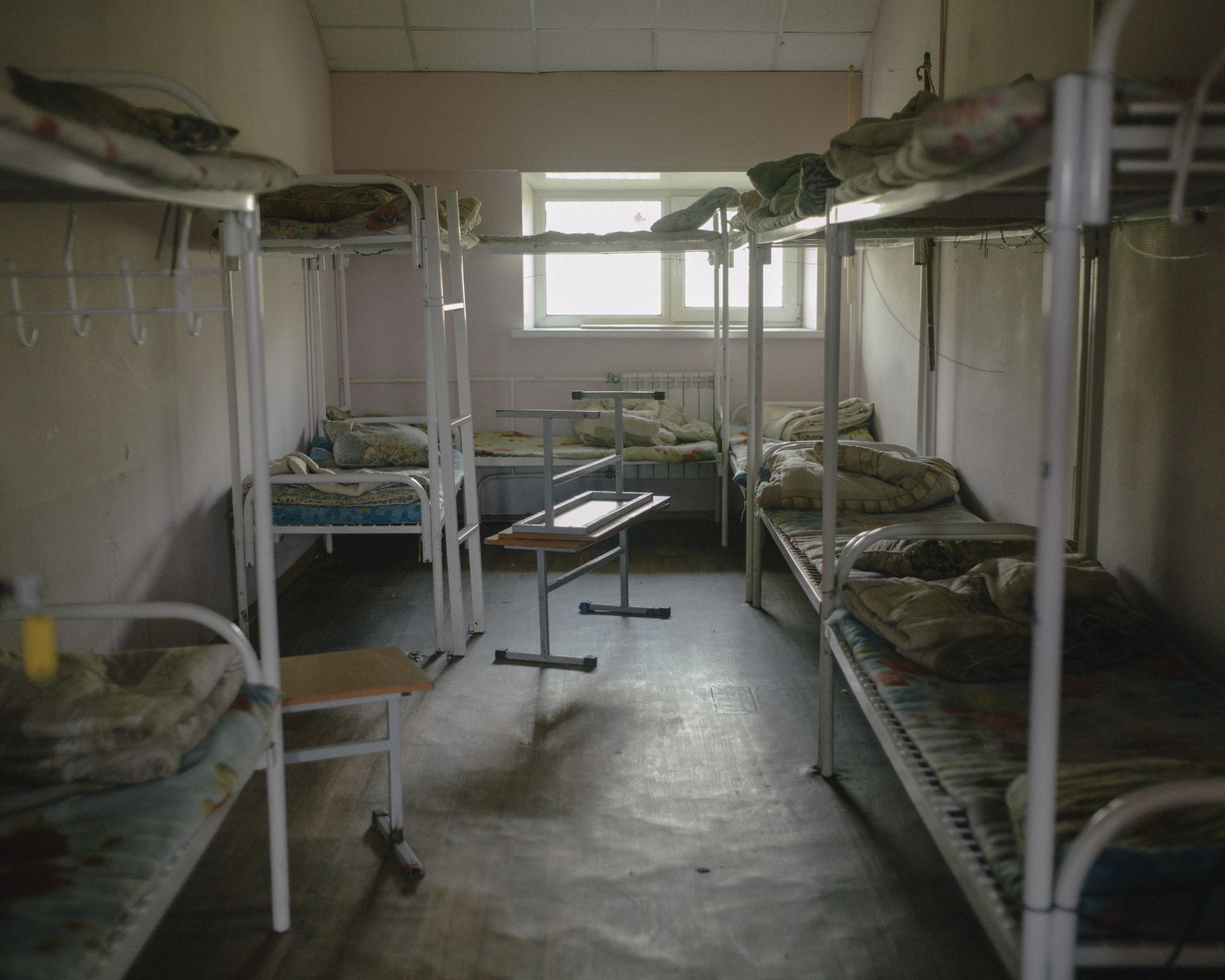 Пустая комната за несколько минут до того, как приедут постояльцы из центра социальной адаптации. Московские власти утверждают, что в государственных учреждениях социальной помощи не хватает мест, чтобы разместить всех, кто остался без жилья и средств к существованию. «Дом друзей» открыл шесть убежищ для тех, кому негде переждать эпидемию. Людей отправляют туда прямо из государственных организаций. Здесь им предстоит провести все время карантина. Для многих это первое достойное место ночлега за многие месяцы. Рассказывают, что часто в таких учреждениях есть только лавки и стулья, а днем нужно обязательно оттуда уходить