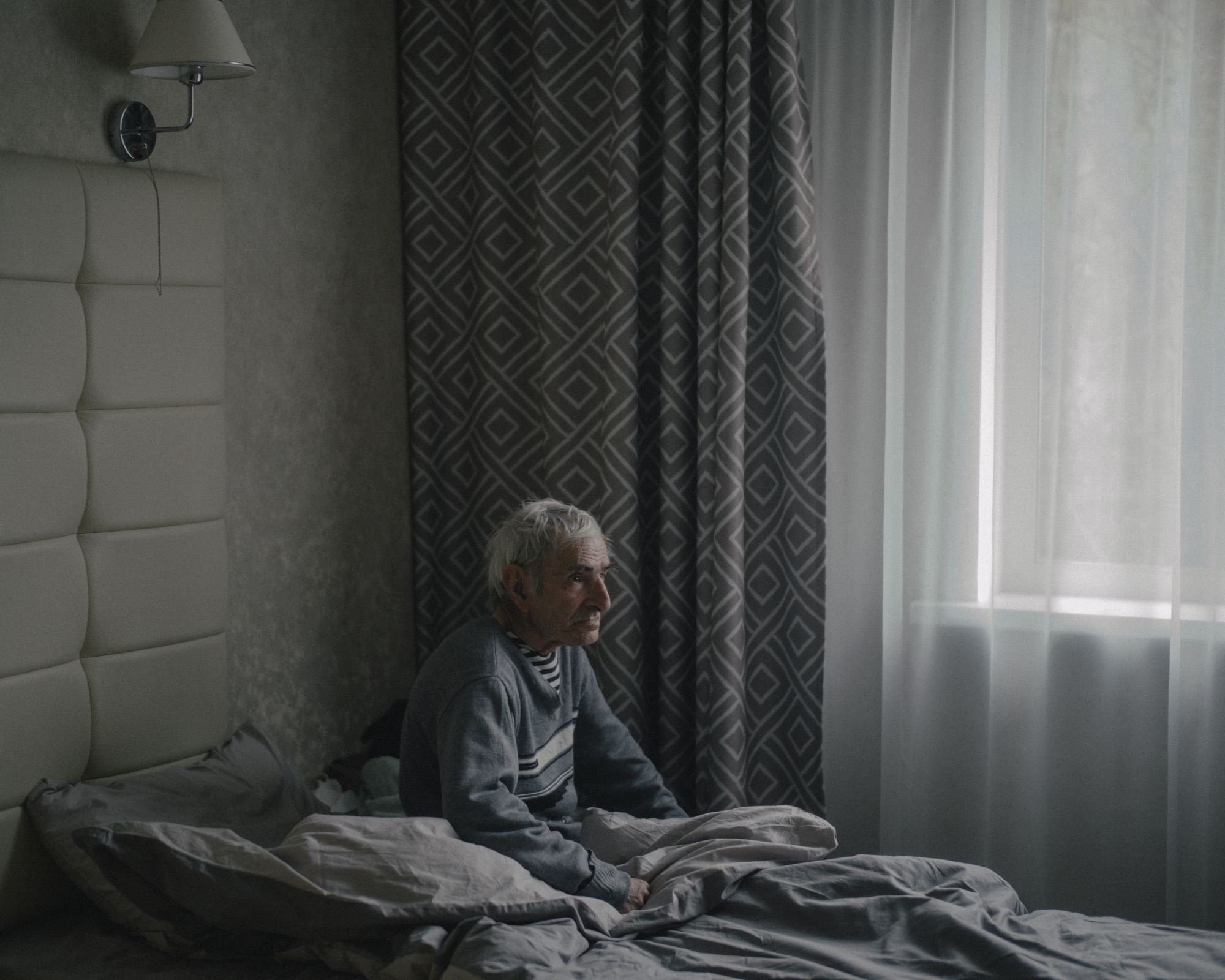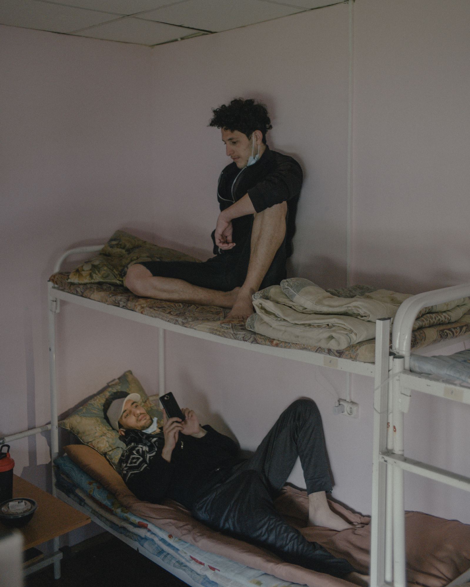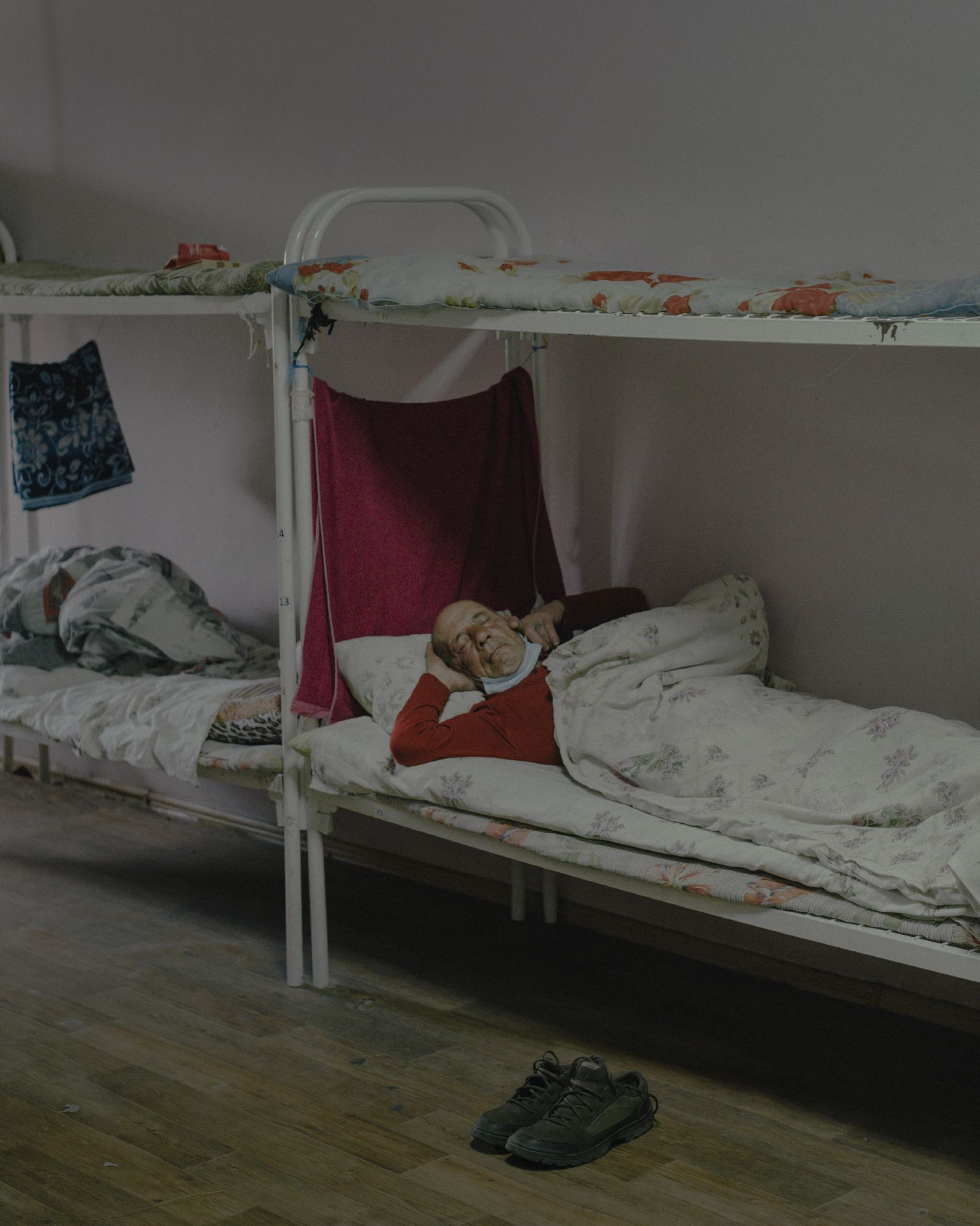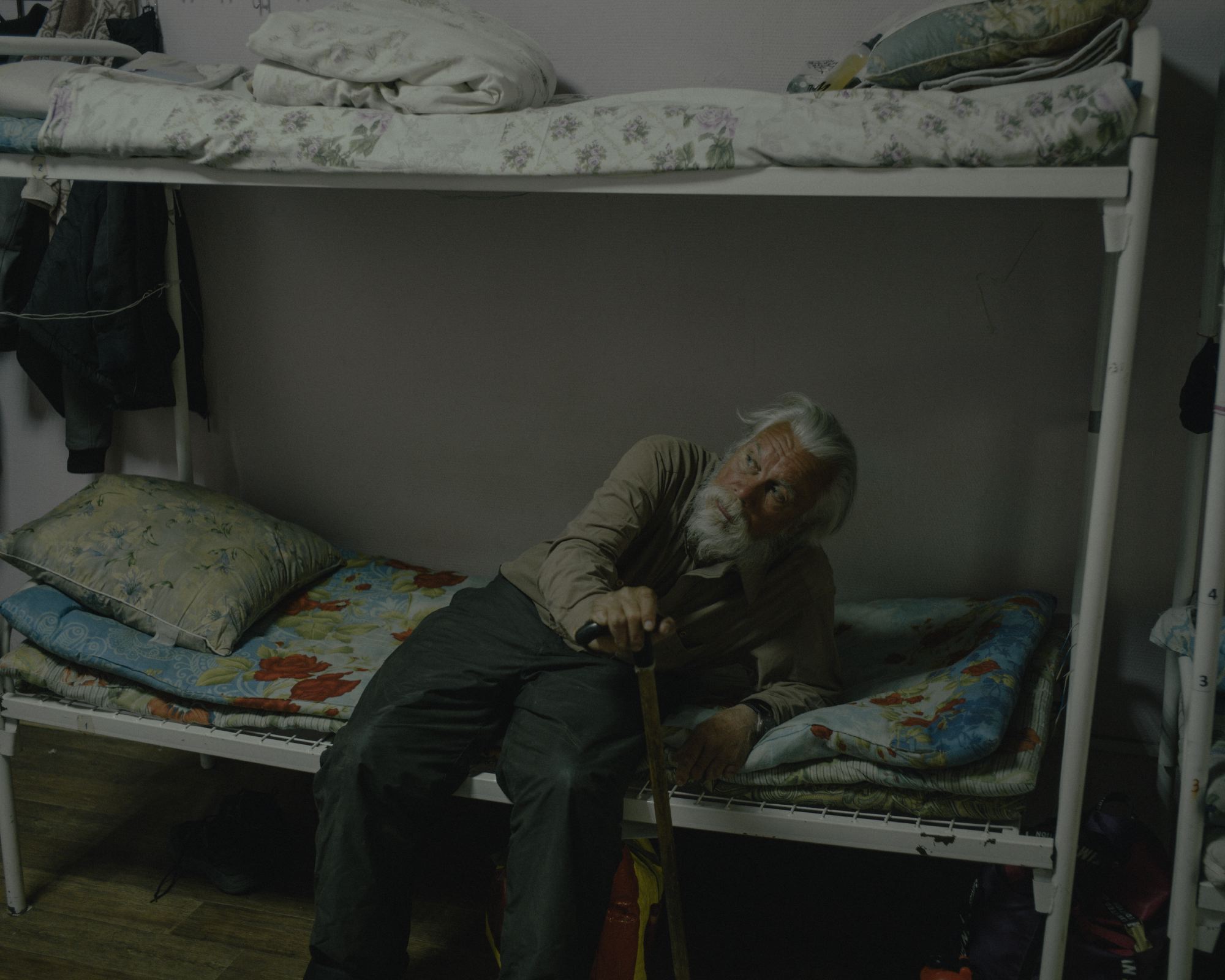 Мужчина сел на свою кровать, впервые за много месяцев. Московские власти утверждают, что в государственных учреждениях социальной помощи не хватает мест, чтобы разместить всех, кто остался без жилья и средств к существованию. «Дом друзей» открыл шесть убежищ для тех, кому негде переждать пандемию. Людей отправляют туда прямо из государственных организаций. Здесь им предстоит провести все время карантина. Для многих это первое достойное место ночлега за многие месяцы. Рассказывают, что часто в таких учреждениях есть только лавки и стулья, а днем нужно обязательно оттуда уходить