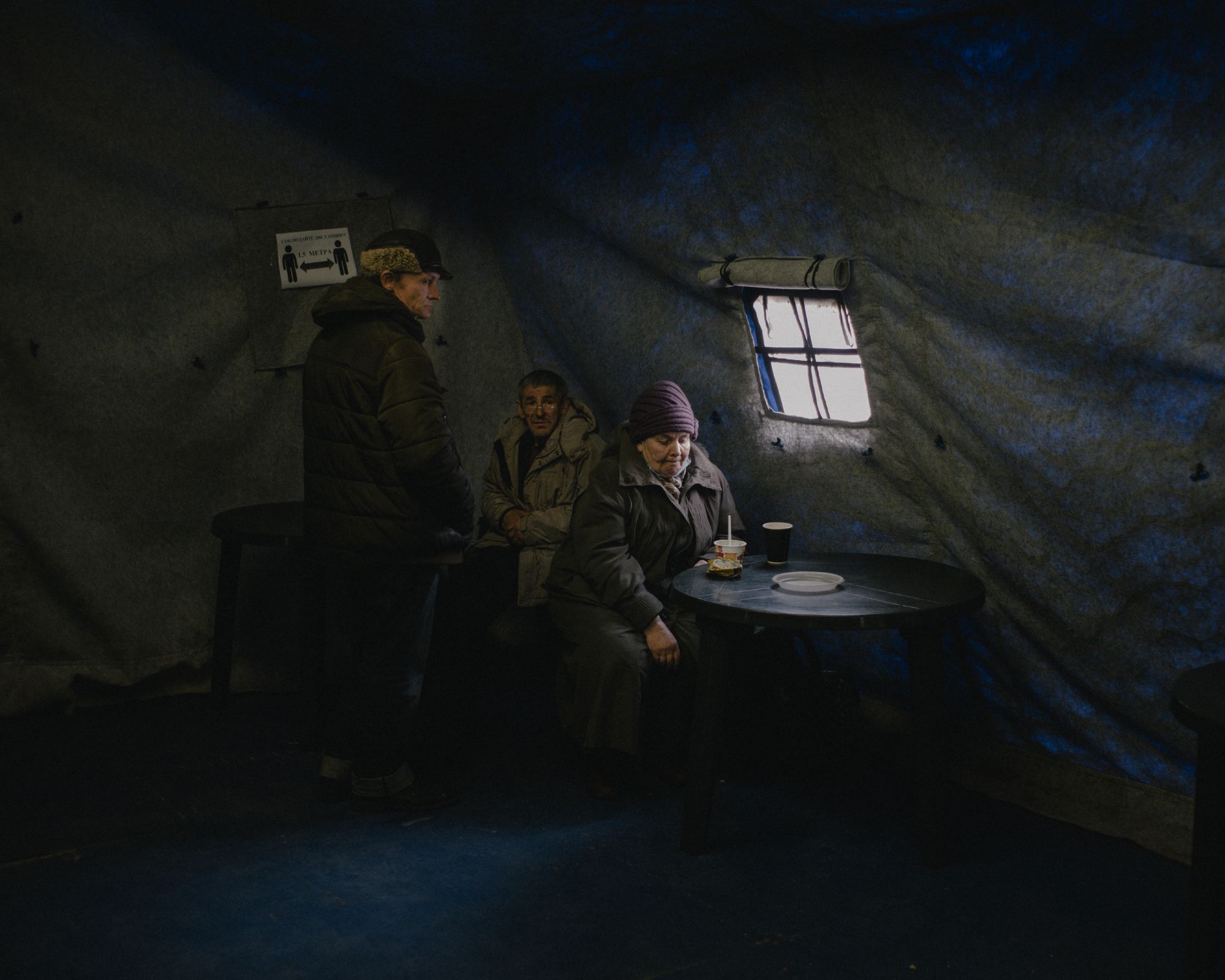 В палатках фонда «Милосердие» каждый день едят бездомные. Прежде приходили 100-150 человек в день. С началом эпидемии приходит 300-400 человек в день. Многие благотворительные организации, поддерживающие бездомных, с началом карантина сталкиваются с неодобрением властей. Наряды полиции разгоняют толпы бездомных вагончиков с едой, объясняя это мерами безопасности. Врачи говорят, что бездомные стали чаще болеть пневмонией
