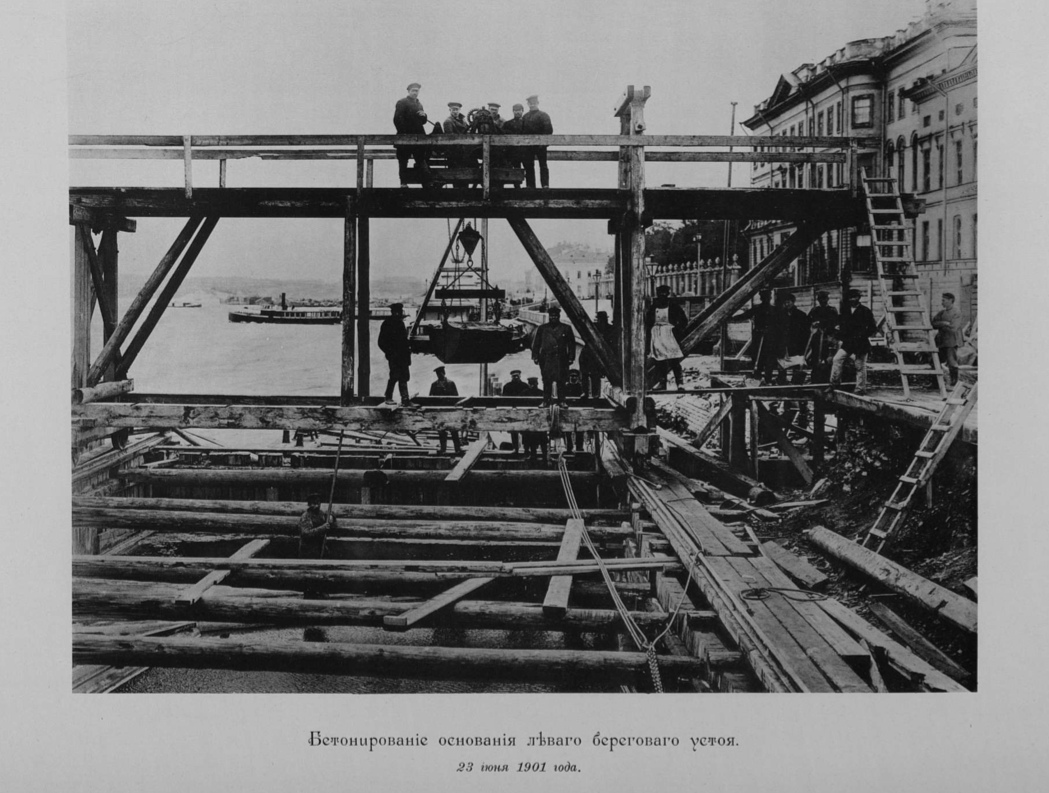 В альбоме также рассказывается история строительства моста — над ним работали отечественные специалисты под наблюдением французской фирмы «Батиньоль». Торжественное открытие состоялось в мае 1903 года.