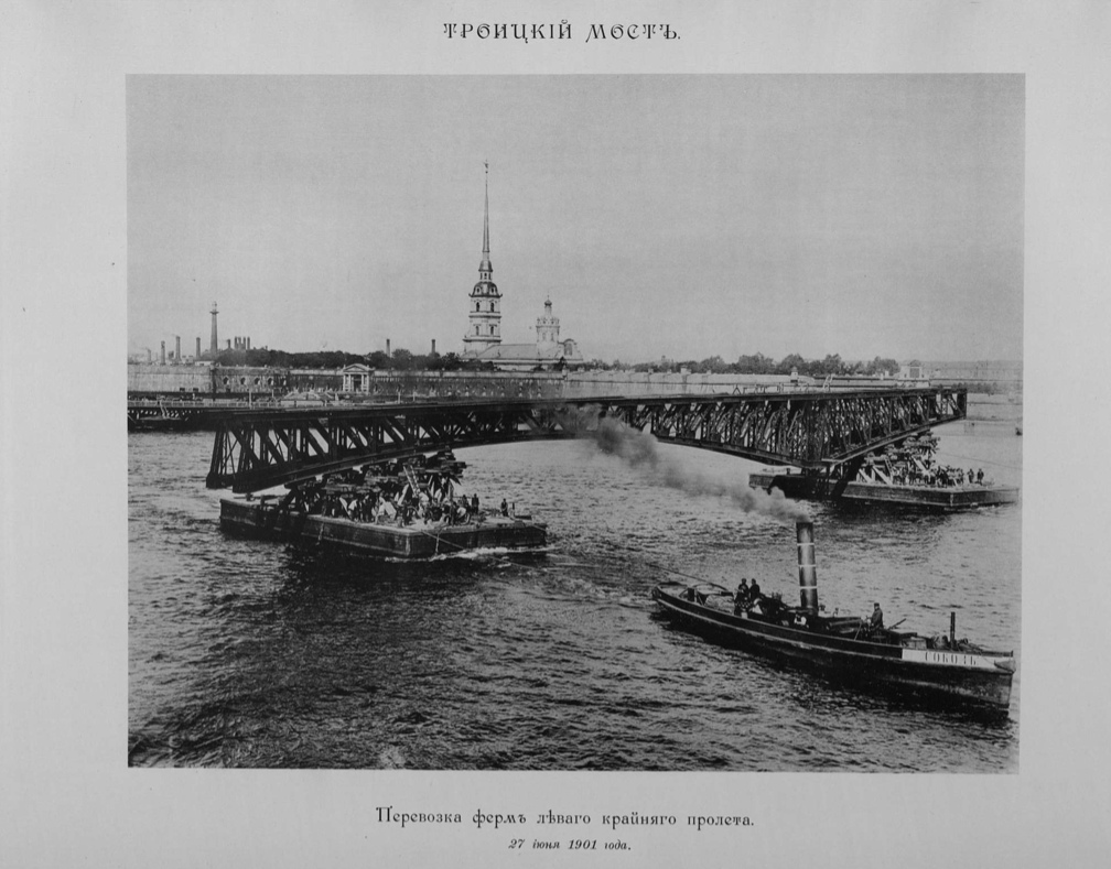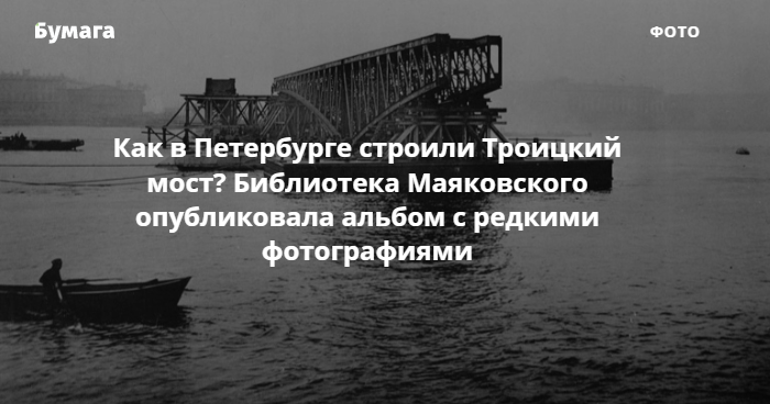 Библиотека имени Маяковского оцифровала альбом, посвященный строительству Троицкого моста в Петербурге. В нем содержатся десятки детальных снимков переправы, сделанных в начале XX века фотографами Максимовым и Феофановым.