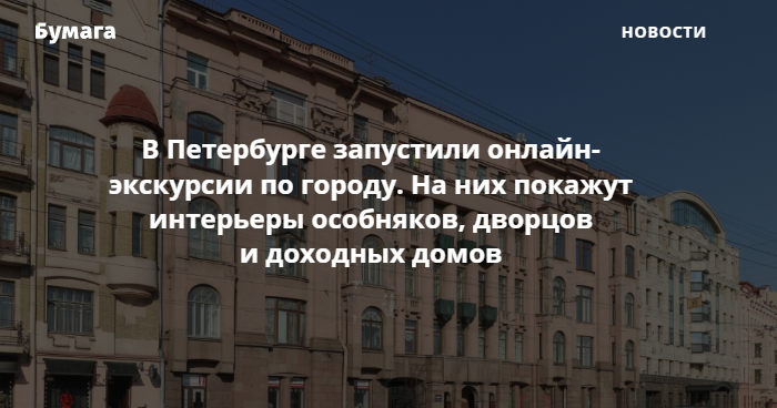 Трансляции начались 29 мая. На них петербуржцы могут не выходя из дома увидеть интерьеры особняков, дворцов, доходных домов и промышленных зданий. На экскурсии необходимо зарегистрироваться, ограничений по записи нет.