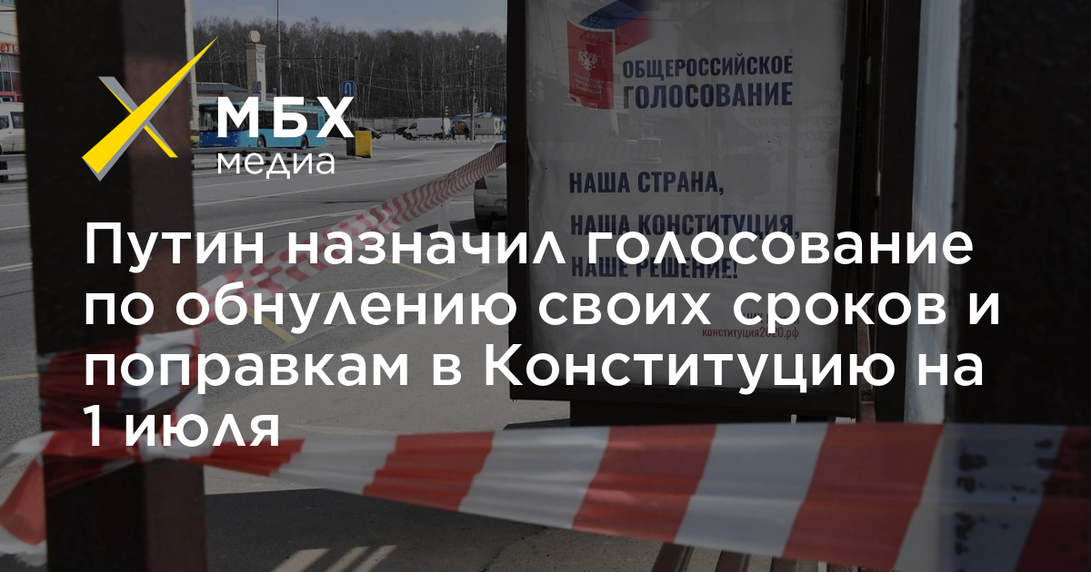 Владимир Путин назначил проведение голосования по поправкам в Конституцию, которые, в частности, обнуляют сроки его президентства, на 1 июля. Об этом он заявил на заседании рабой группы по поправкам.
