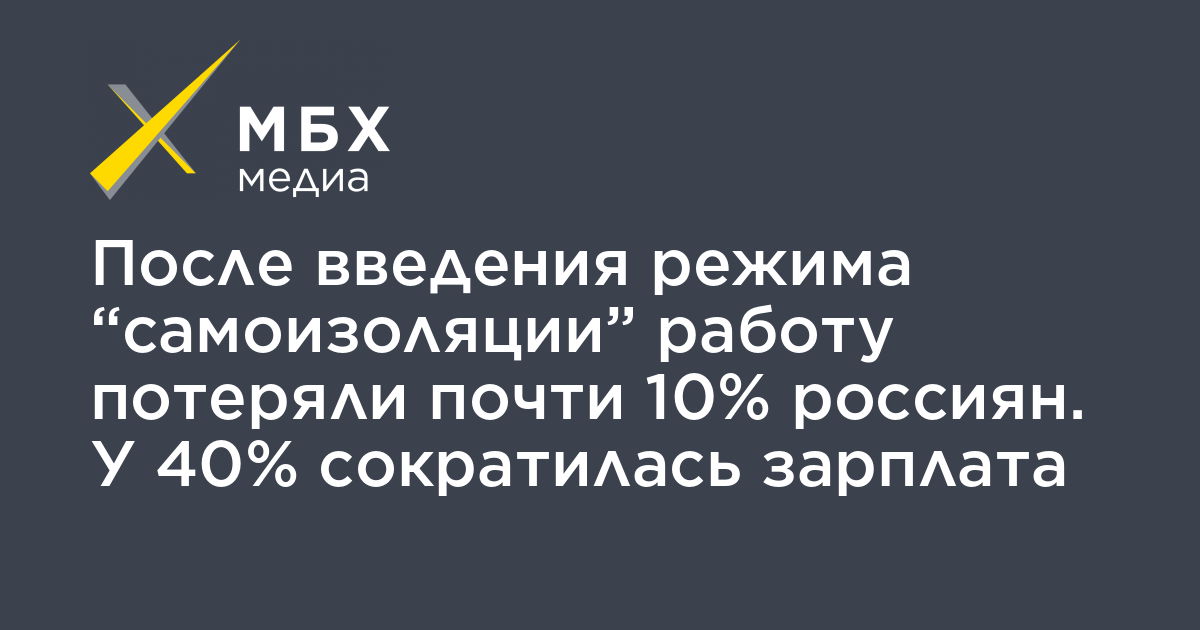 После введения режима «самоизоляции» работу потеряли почти 10% россиян. У 40% сократилась зарплата