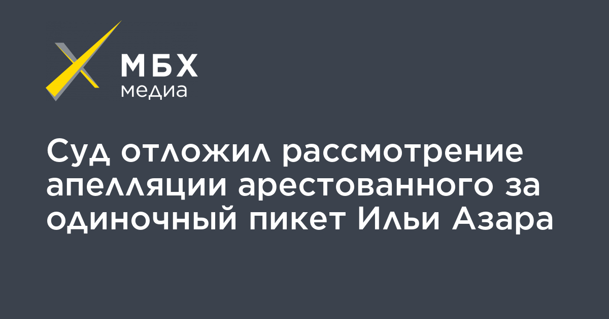 Мосгорсуд отложил рассмотрение апелляции журналиста Ильи Азара, который получил 15 суток ареста за то, что вышел к зданию столичного МВД с одиночным пикетом в поддержку создателя паблика «Омбудсмен полиции» Владимира Воронцова и активиста Виктора Немытова. Об этом сообщил «МБХ медиа» адвокат «Апологии протеста» Леонид Соловьев.