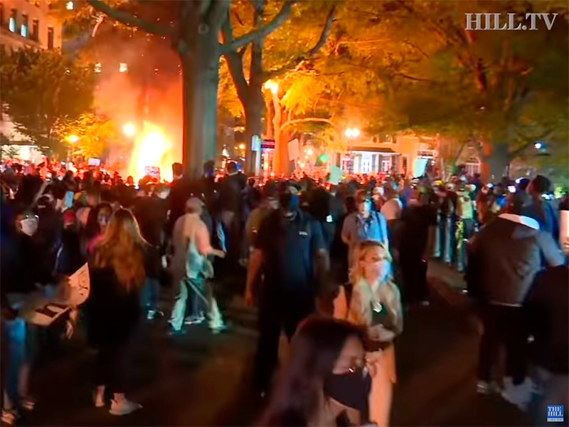По данным собеседников телеканала, имеющих непосредственное отношение к силам, защищающим Вашингтон, участники беспорядков кидали в сотрудников Секретной службы бутылки и емкости с зажигательной смесью в парке Лафайет, расположенном рядом с Белым домом.