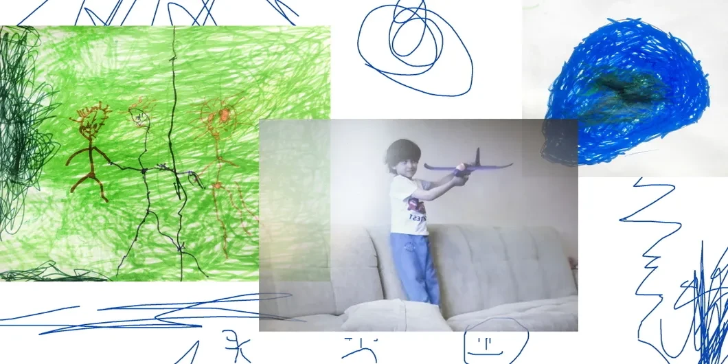 — Это мама, папа и братик. Мама с красными глазами, потому что она не спит. Они пошли к большому вирусу, который вылез из мусора. Они хотели увидеть шоу, оно было впереди. Они потеряли дорогу, и братик догадался. Вирус стал расти и не оставил им места. Все стало зеленое из-за этого вируса. Они хотели его побороть огненным шокером, прожечь его. В итоге у них получилось его побороть всей семьей. Когда они победили, луна окрасилась обратно в синий цвет, и все стало хорошо. Но вирус сказал: «Я вернусь и победю тебя».
