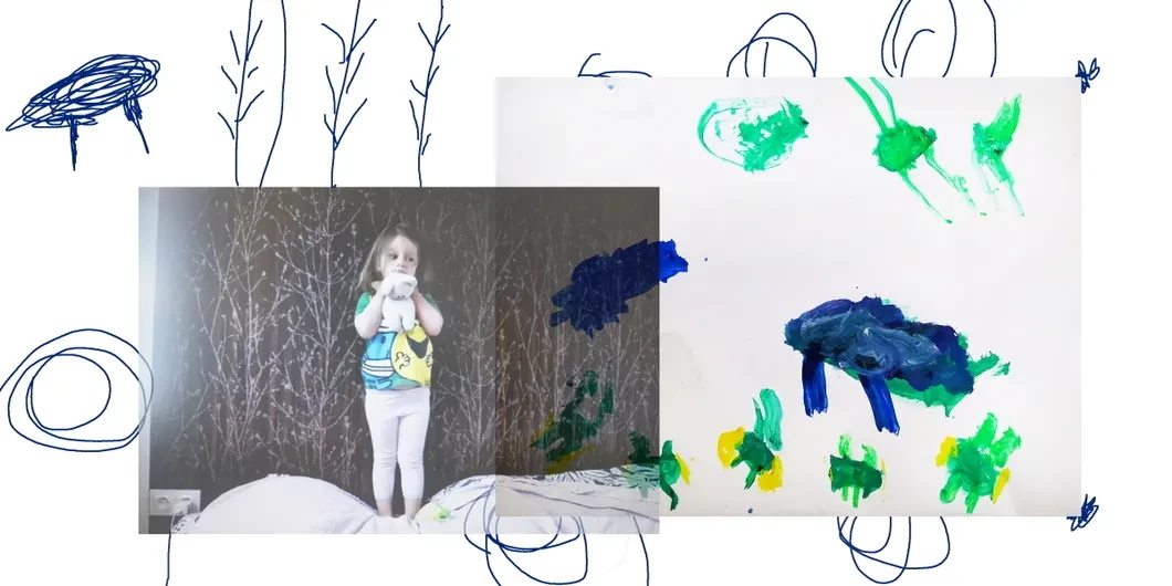 — Это все коронавирусы летают на рисунке. Это я, папа, мама, а вот две бабушки и еще один людь. Это все имена коронавирусов. А еще тут мыло и водичка — они побеждают коронавирус. Чтобы победить коронавирус, еще можно помыть головку.