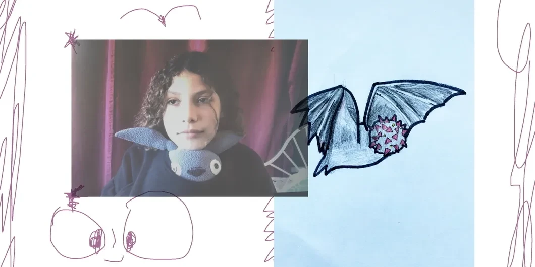 — Я читала статьи еще до того, как вирус добрался в Россию, когда еще был в Китае. Так что я думаю, что это все летучая мышь, и родители считают так же, поэтому такой рисунок. Я их очень люблю рисовать к тому же. Но, если вдуматься, я не исключаю, что тут может быть какой-то заговор или что-то еще, о чем мы не знаем. Я решила — меня можно где-то по центру поставить между теми, кто верит, что вирус из природы, и теми, кто думает про заговор. Вообще, сначала я слепила хлебный коронавирус, но его сожрал мой брат. Таким образом, он его победил, поглотив его — показал, что он его сильнее. У меня старший брат, и я его уже хочу вызвать на рукопашную схватку за это.