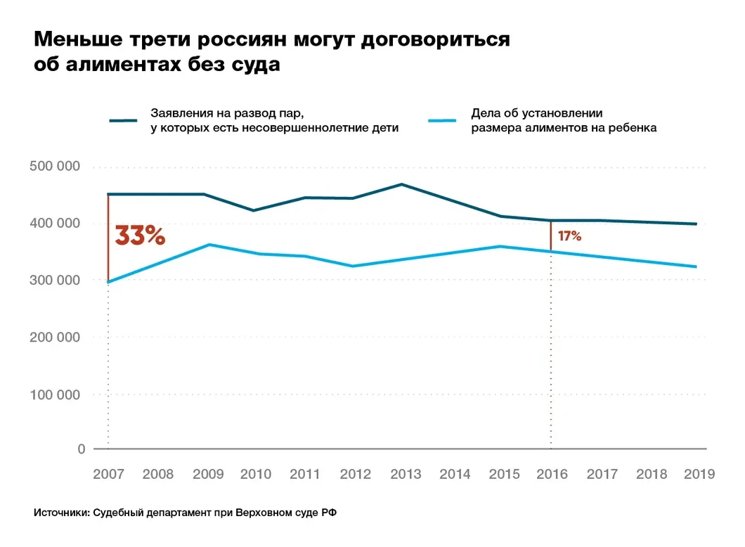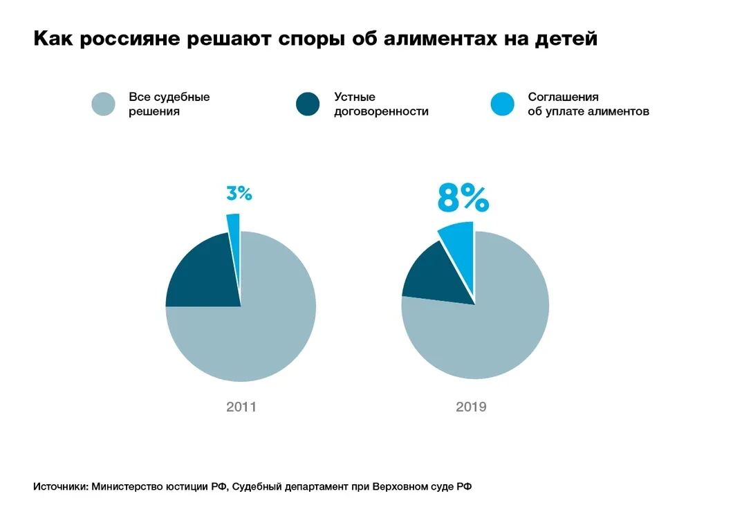Решать спор об алиментах через суд — самый популярный сценарий среди россиян.