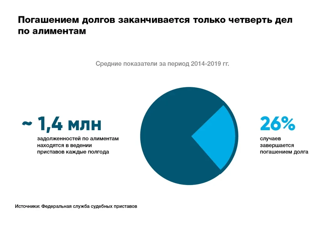 То есть ведомству удается взыскать менее 10% от общего долга россиян по алиментам.