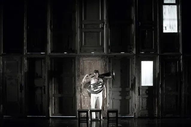 Художник Станислав Морозов на большой сцене Молодежного театра выстроил образ державного миропорядка, в котором затерялся частный человек Семен Семенович — этот Акакий Акакиевич ХХ века. Между ампирной облезлой колоннадой — коммуналка жилищных клеток. Вместо стен — всем знакомые веревки с белым нижним бельем и простынями. Этот контраст разыгрывался с пролога: на экране счастливые советские массы под счастливую музыку марша несут портрет одного на всех вождя, а на авансцену выскочили три клоуна Тик, Так и Костя, которые счастливы идти в ногу с огромной массой. Для всех героев Маша Данилова придумала костюмы, в которых отражался, но не имитировался, стиль 1920 годов. Не хотелось привязывать текст к реальному историческому времени ни в костюмах, ни в декорациях.