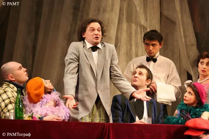 Репетиции в РАМТе — из самых счастливых в жизни. Мне очень повезло с артистами: Евгений Редько, игравший Аристарха, — мастер фантастического реализма, непредсказуемость его шарнирных телодвижений восхищала и пугала. Подсекальникова играл замечательный Алексей Розин. Теперь его ценят за роли в фильмах Звягинцева, а тогда Алеша был малоизвестным. Для меня важно, что Подсекальников — молодой человек. И Игорь Ильинский играл его молодым…
