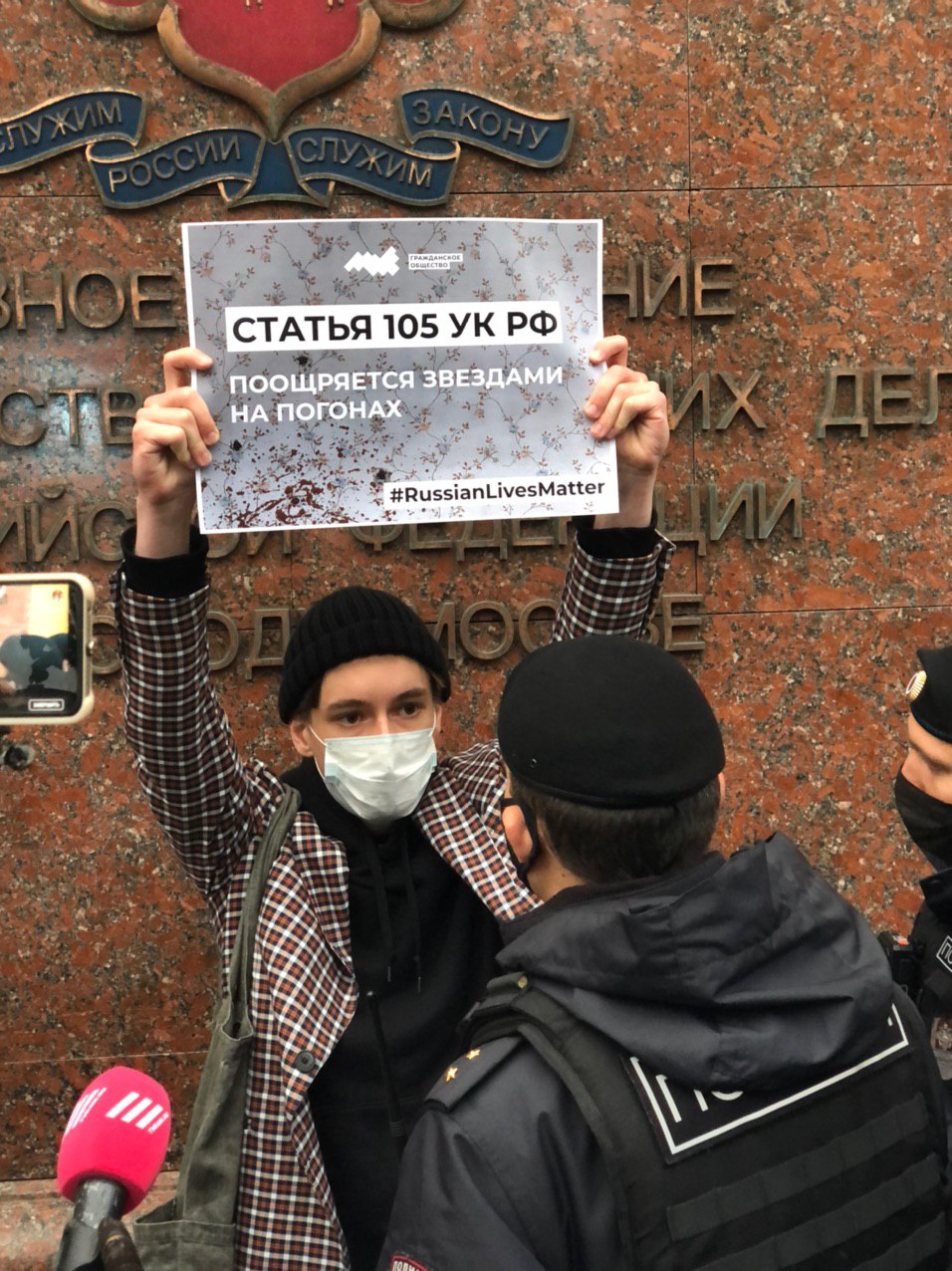 Ранее «Гражданское общество» анонсировало серию одиночных пикетов возле здания главка московского УМВД. Поводом стало убийство бойцами Нацгвардии жителя Екатеринбурга Владимира Таушканова, которого заподозрили в краже обоев из магазина.