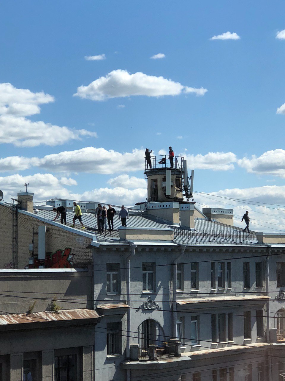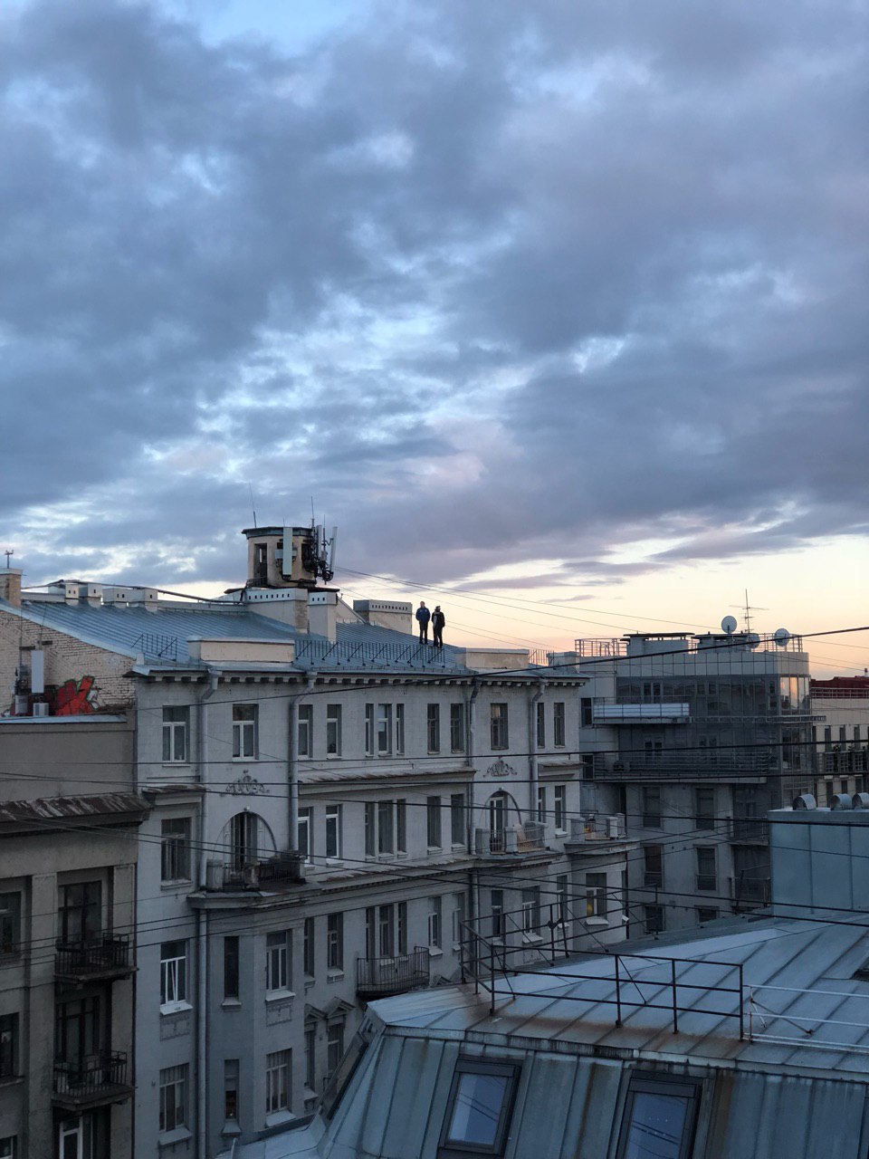 На крыше дома напротив — Восстания, 51 — тоже часто можно увидеть людей. Туда приходят, чтобы насладиться закатом.