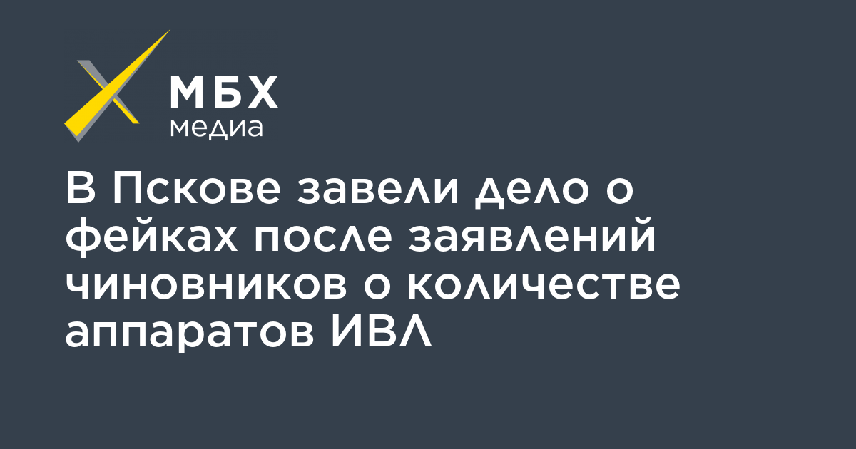 МВД по Пскову завело административное дело о фейковых новостях (часть 9 статьи 13.15 КоАП) после заявлений местных чиновников, среди которых губернатор области Михаил Ведерников, которые называли разное количество аппаратов ИВЛ в регионе. Об этом сообщил «МБХ медиа» активист Николай Кузьмин, который получил соответствующий ответ от ведомства.