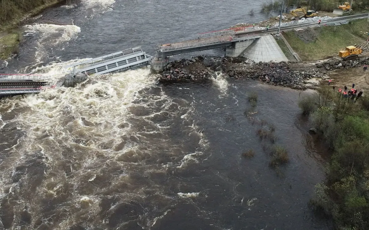 Про готовность к паводку уже не рапортовали. На следующий день затопило еще кусок федералки — в направлении финской границы. А через день большая вода повредила опору железнодорожного моста через реку Кола. Последствия паводка оказались не так сокрушительны, как последствия ремонта. Чтобы укрепить опору, в реку стали вагонами высыпать булыжники. На происходящее приехал поглядеть губернатор, после чего отчитался в инстаграме: